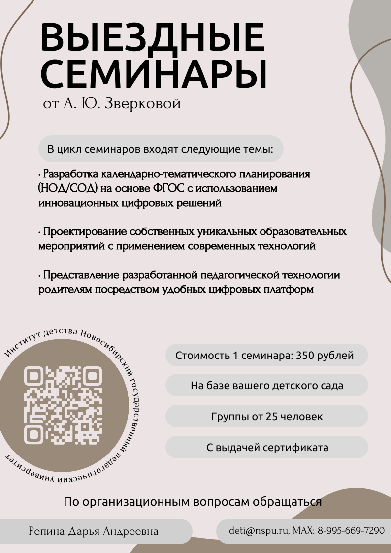 Цикл обучающих семинаров для сотрудников ДОУ от А. Ю. Зверковой