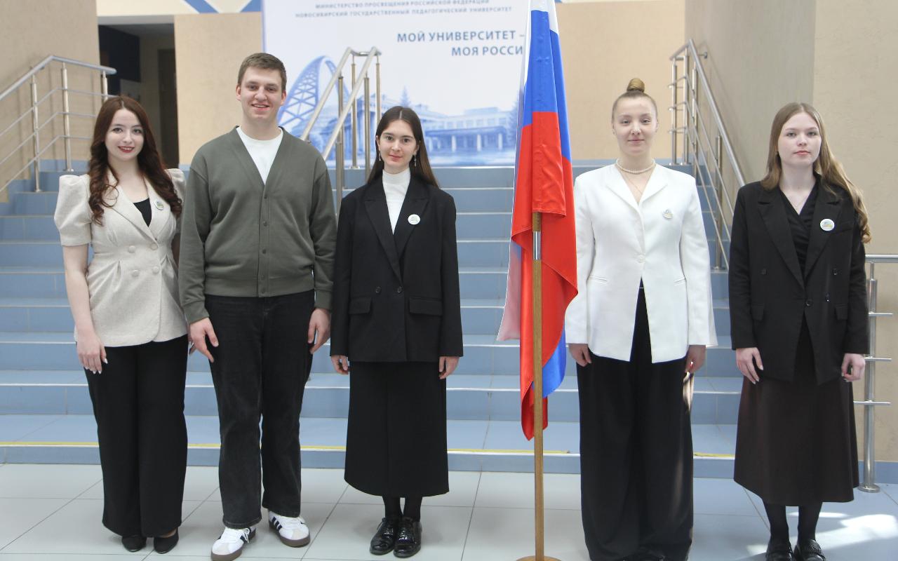Традиционная линейка с поднятием флага России в НГПУ 2 марта была посвящена новому российскому празднику - Дню наставника.